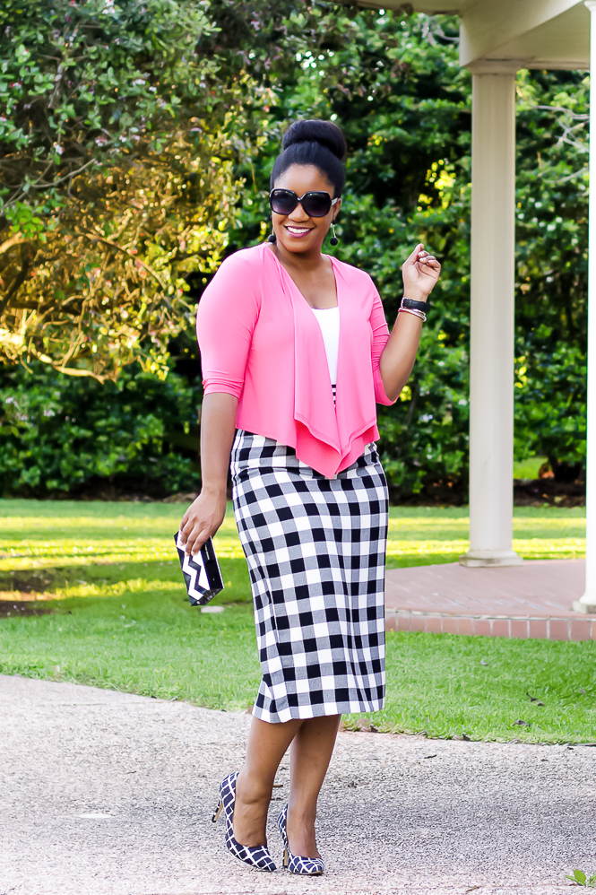 Boleros: SleekTrends ( Black, Yellow, Coral) // Gingham Skirt: Similar // Cami: Old Navy // Shoes: Similar, Similar // Clutch: Amazon // Belt: Amazon (the belt that came with the dress) // Earrings: Francesca’s