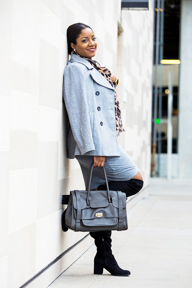 Dress: Nordstrom // Coat: Similar, Similar // OTK Boots: DSW // Bag: Similar, Similar // Scarf: Similar, Similar