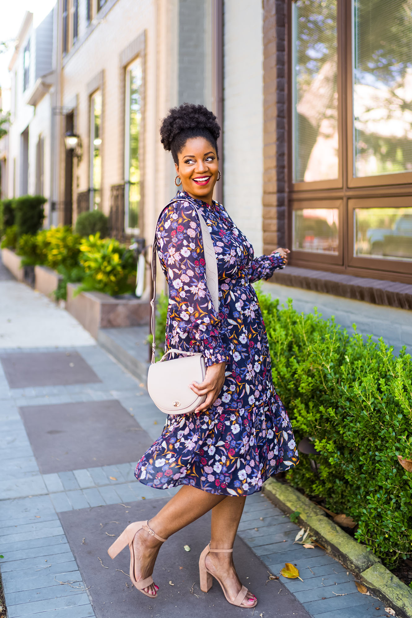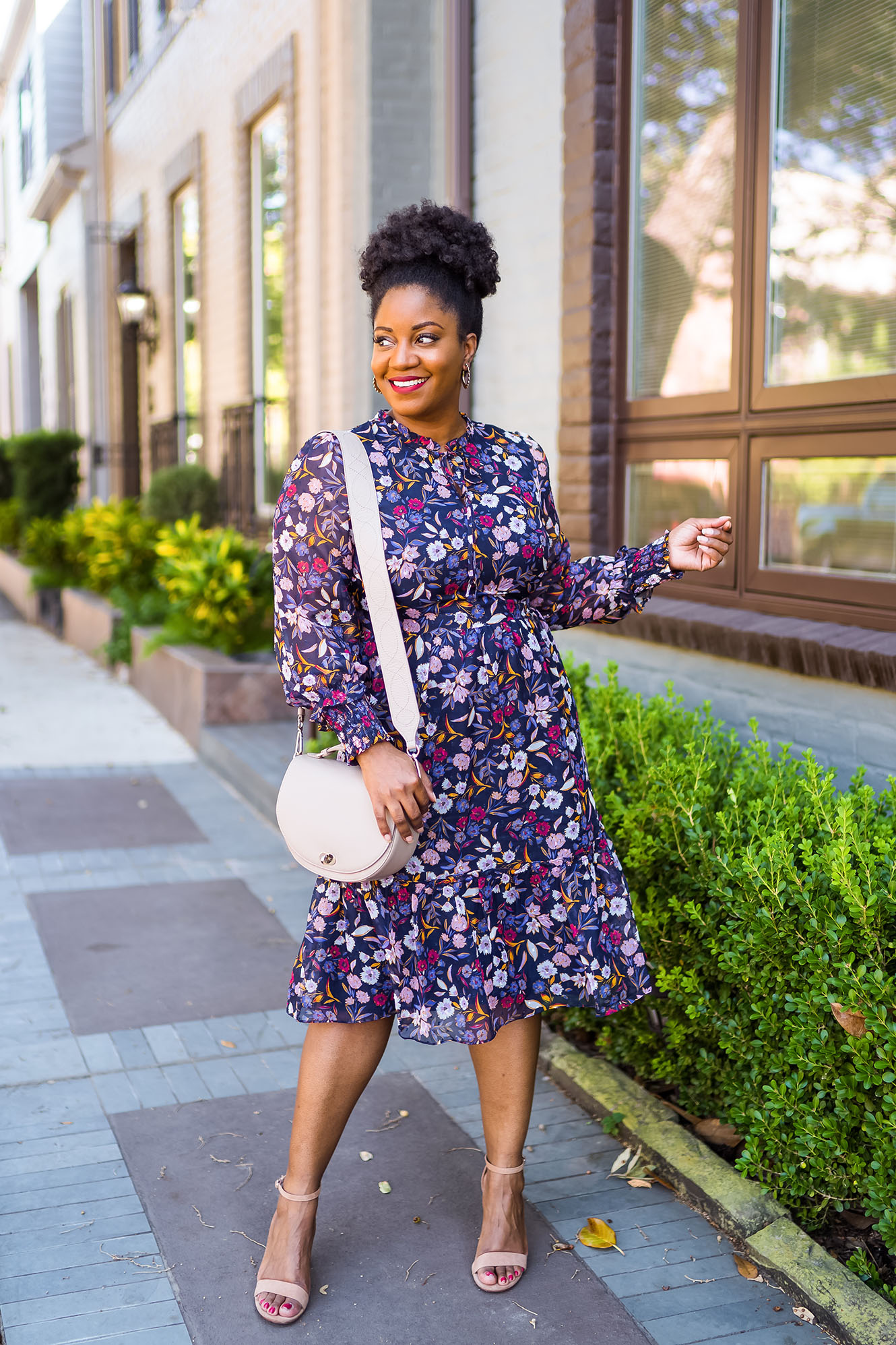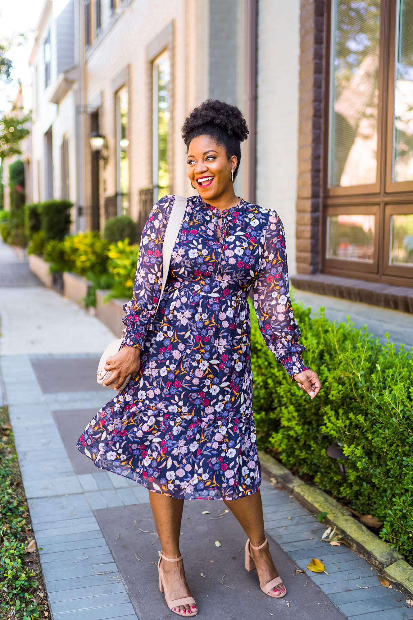 On a lighter note and since we’re here, I guess I should also talk about this outfit! This outfit was gifted to me by Draper James, and I’m obsessed. This Carrie Dress in Painterly Floral is the prettiest Draper James dress that I own. I love the colors! In my case, the dress ran small, so you may want to size up. I’m wearing the dress in my normal size (12), but it totally didn’t zip up in the back. lol. So, yes, I was just out there in the streets taking photos with the back of my dress open. *facepalm* Oh well, I got the shots though, and they’re cute, amirite?! 🙂