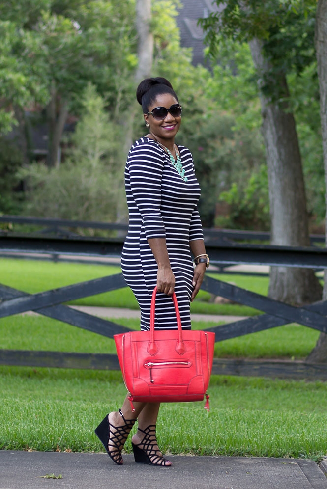Happy Humpday!! This style of dress was all the rage last year (at least it was in my mind). I just had to have it, and eventually, I found it (I can’t remember where)! It’s casual and can be worn with some Chuck Taylors or other tennis shoes or it can be glammed up a bit with heels or wedges, like in this look. I love these wedges…such a perfect way to add some glamourous edge to a look, while staying comfortable! I’ve been wearing them a lot lately (here and here). If you have something to do this holiday weekend that requires a little bit of casual glam, this is the look for you (here‘s another good one)!