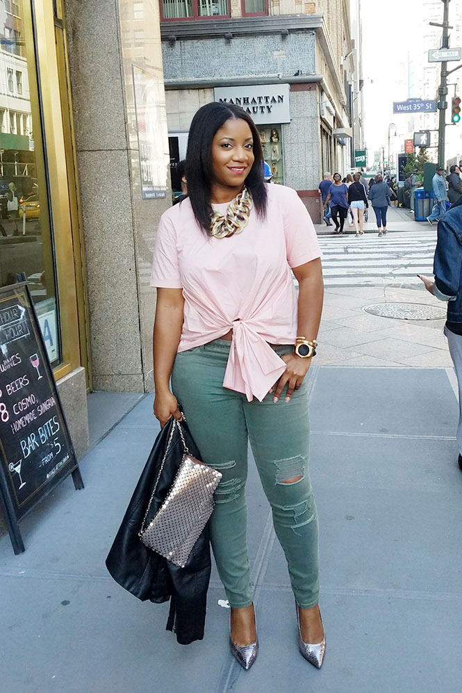 Bomber Jacket:   Jayke (ordered via Joliepepee) // Shirt: H&M // Pants: Banana Republic Sloan // Shoes: Similar, Similar, Similar // Clutch: Similar, Similar