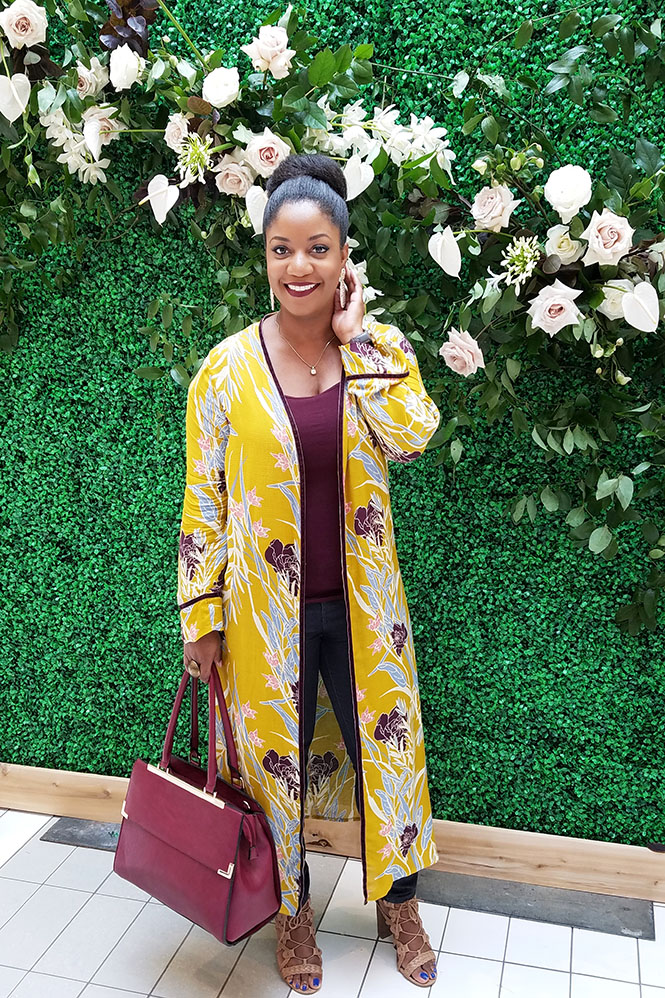 I wore this look to the Create and Cultivate Summit a few weeks ago in Houston. It was a really fun blogger event that I talked a little bit about in this post. It was my first day trying out the duster/kimono trend. I was, and still am sometimes, convinced that these dusters/kimonos look like bathrobes! However, I think this look turned out pretty well. I found the duster from Target a couple of weeks prior. I love the colors. It’s sold out now, unfortunately, but I linked to a couple of similar styles. Have you tried the duster/kimono trend? What do you think about it?