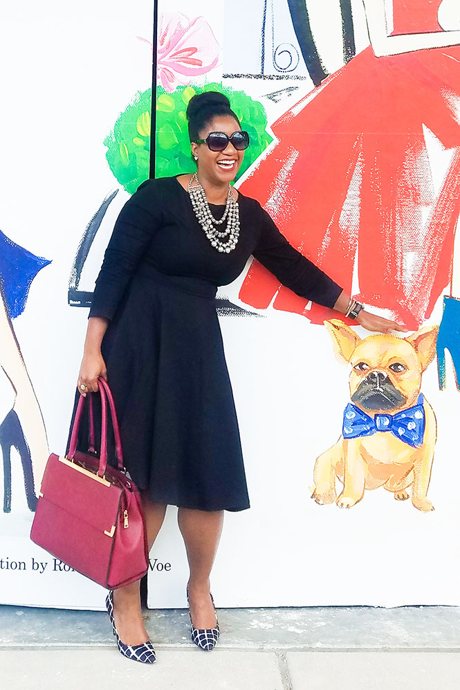 Don’t mind me and this goofy picture with my pretend dog. This look was inspired by Audrey Hepburn. This vintage style dress is one of my favorite, most versatile dresses, and it’s under $30! You may remember that I also have it in black and white stripe. It’s flattering and perfect to wear for most occasions (work, church, date night, wedding, etc). I may get it in another color (pink maybe?).