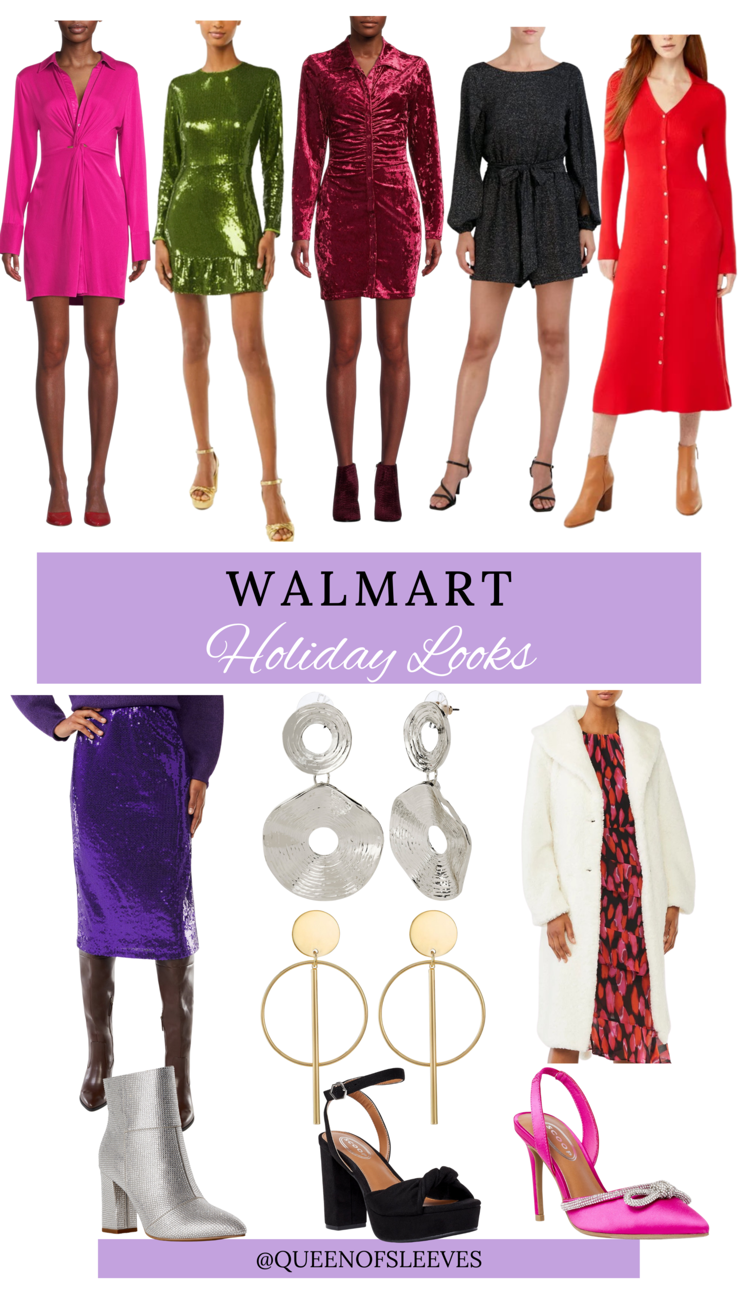 Hi, Friends and Sleevenistas! Have you been to Walmart lately?? They have really stepped up their fashion game, and I am here for it! I love fun, bold fashion but I also love affordability, and you can get both from Walmart! Their holiday looks this season are so fun – think sequins, bold colors, and velour. Today I’m sharing a roundup of my favorite holiday looks from Walmart, and how I style one fabulous sequin dress, three ways!