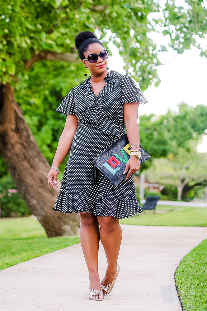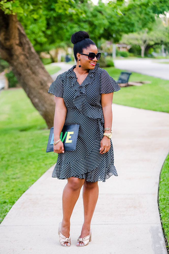 I got this Tahari ASL dress from a collaboration I did with Gwynnie Bee a couple of months ago. You guys already know how much I love polka dots (here, here, etc), so it was an obvious choice for me. Since this dress is Tahari ASL, it is on the pricier side. Usually, when I post anything on Queen of Sleeves, I try to keep things under $100. This dress is a little bit over, but Target carries a very similar dress if you love the style, but not the designer price.