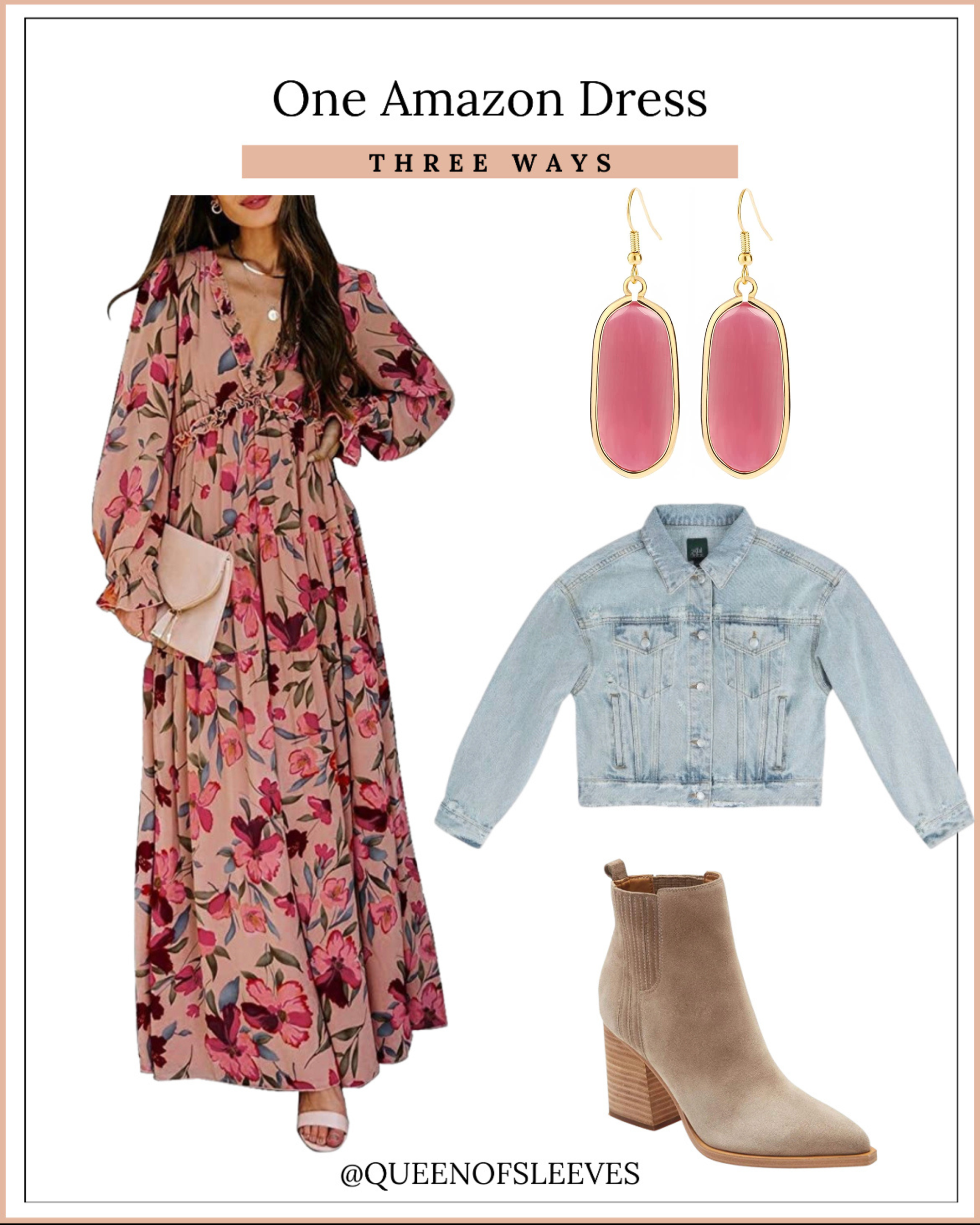 As you can see, this Amazon dress can be worn for so many different occasions. From date night to brunch or a wedding, the styling options are endless and you’ll be looking gorgeous no matter where you are! Did I mention this dress comes in multiple colors?! So even if pinks and oranges aren’t for you, one of the other color options may be perfect! Keep in mind, you may have multiple dresses already in your closet that are more versatile than you think! Switching up the jewelry, adding a jacket, or changing the shoes can create a whole new look. Which styling of this Amazon dress do you like the best? Do you prefer the wedding guest look, brunch with the girls, or date night? Let me know in the comments below!