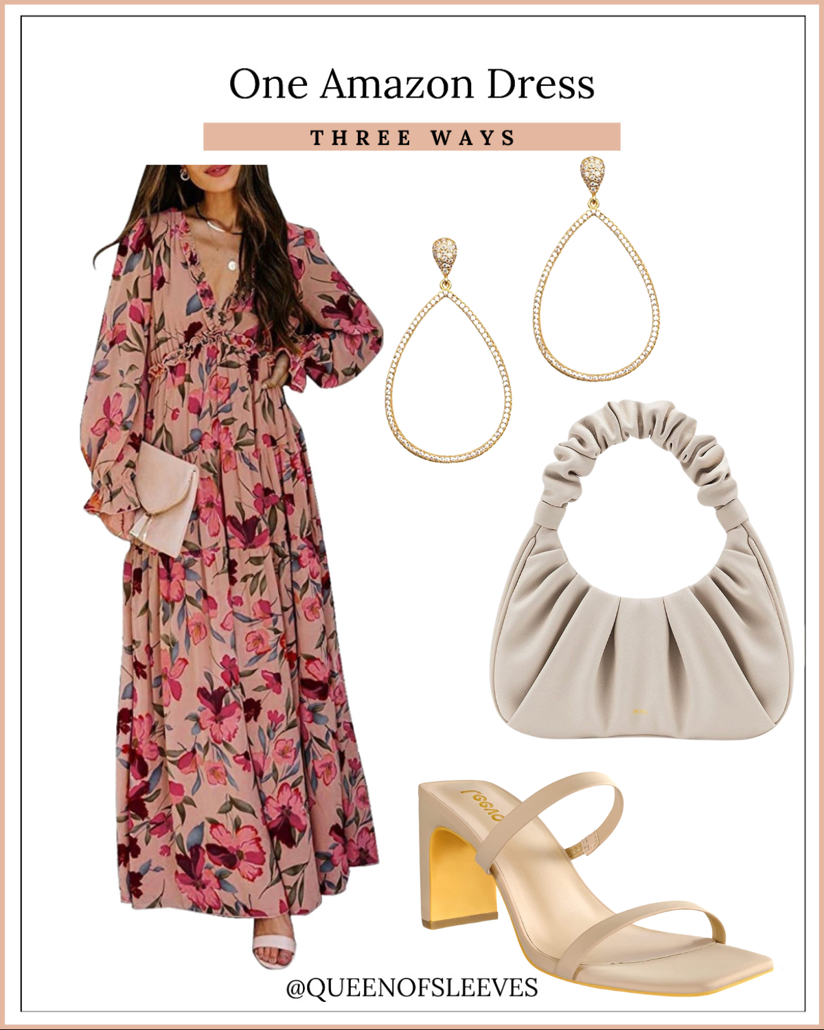 Hi, Friends and Sleevenistas! Have you ever purchased a dress that you can’t wait to wear anywhere and everywhere? A few months ago, I purchased the most gorgeous dress from Amazon, and I love its versatility. Can I wear it to brunch with the girls? I sure can! A wedding? Yep! Date night? Absolutely! Keep reading to see the different ways you can style one Amazon dress three ways, making it perfect for multiple events!