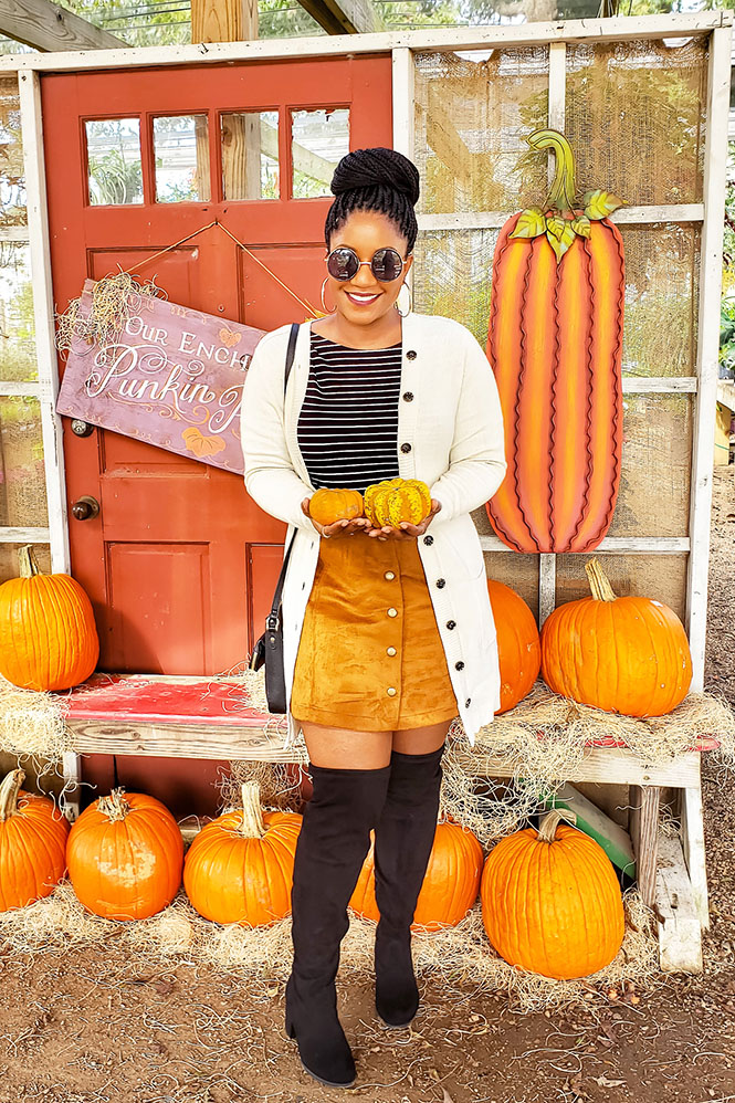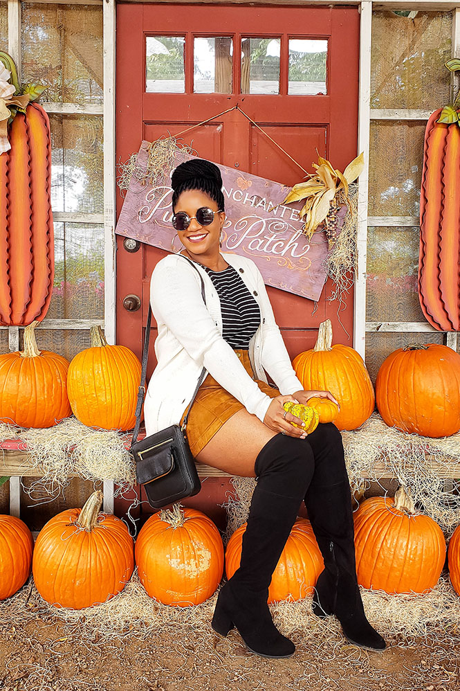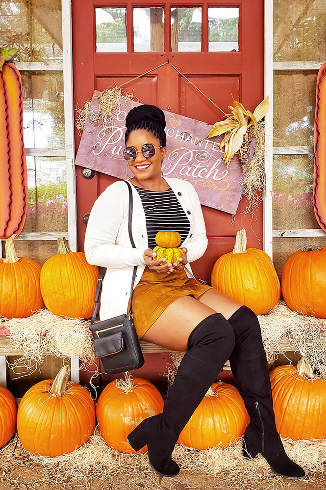 Hi, Friends and Sleevenistas!! Today, we’re having some fun in a pumpkin patch…and you know what that means…FALL has finally made its way to the blog! Yes…yes, it’s been fall in the real world for weeks, but whatever. Gosh, so much has been happening lately…where do I even begin? I guess I can catch y’all up on some of the things that have been going on, in case you missed them! A couple of weeks ago, something pretty cool happened…I was on tv!!! Those of you that follow me on Instagram probably recall that I did a tv segment on Great Day Houston with the creative director of O! Magazine, Adam Glassman, and Chico’s!! It was so awesome! In fact, the leopard coat above came from that opportunity! I was a model for a day, I got to meet someone who knows Oprah, AND I got to keep all the clothes. It was so much fun. If you want to check out the tv segment, you can find it HERE (I show up at about 4:15).