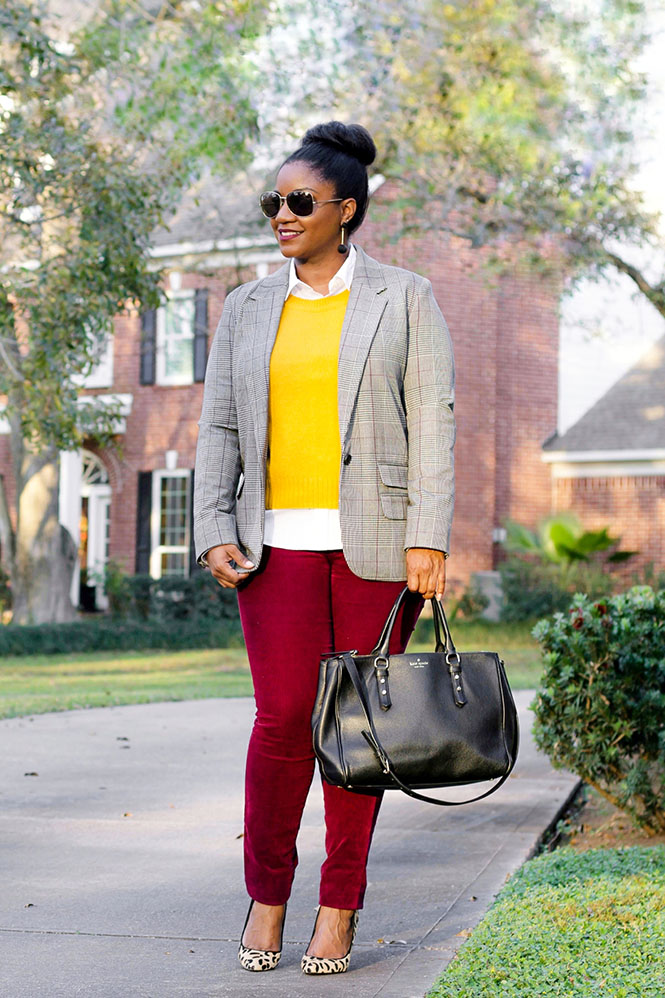 Blazer: Target (sold out online, but may be able to find at store near you) (Similar, Similar)// Sweater: H&M (Similar, Similar) // Button-up: Similar, Similar // Pants: Nordstrom // Shoes: Similar, Similar // Bag: Kate Spade – old (Current Version, Budget friendly)// Earrings: Francescas // Sunglasses: Similar