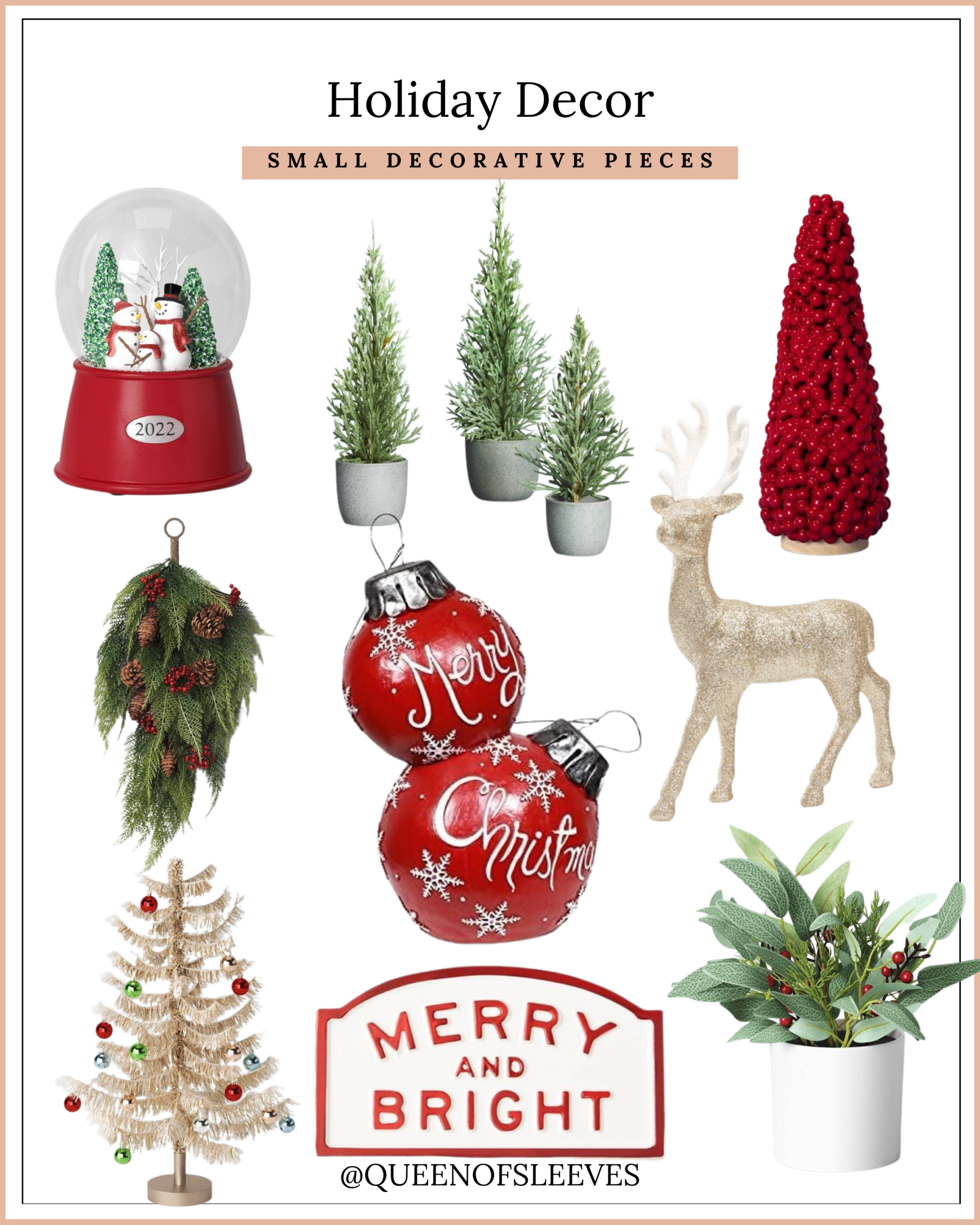 Hi, Friends and Sleevenistas! Do y’all believe in waiting until after October 31 or waiting until after Thanksgiving to get into the Christmas spirit? The Christmas movie marathons have already started on Hallmark, and Mariah Carey has decreed that we can start playing her #1 Christmas hit on November 1. Holiday decor has already started to arrive in stores, and it makes me want to start decorating ASAP (even though I usually believe in waiting until after Thanksgiving)! There’s a reason this upcoming season is called the most wonderful time of the year, so I can’t wait for it to begin! When decorating for the holidays, there are a few main items that are “must haves” for me! I love a good holiday wreath. A wreath on the front door sets the tone and gives a warm and inviting first impression. I also want to make my tree as beautiful as possible, so I love gorgeous ornaments and lights! I also love small decorative pieces to place around the house! Today, I am sharing some of my picks from new holiday arrivals!