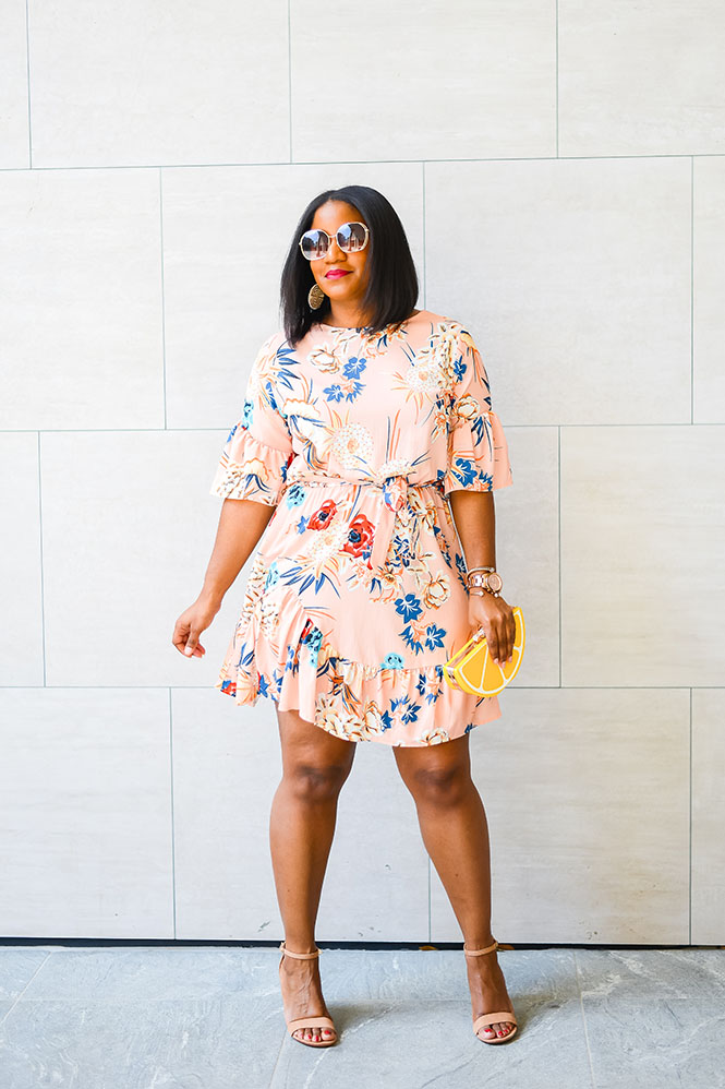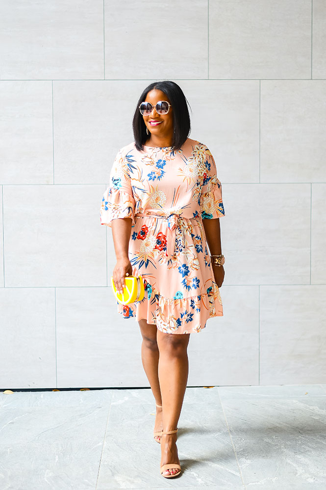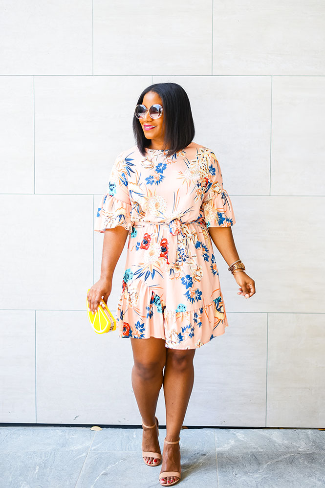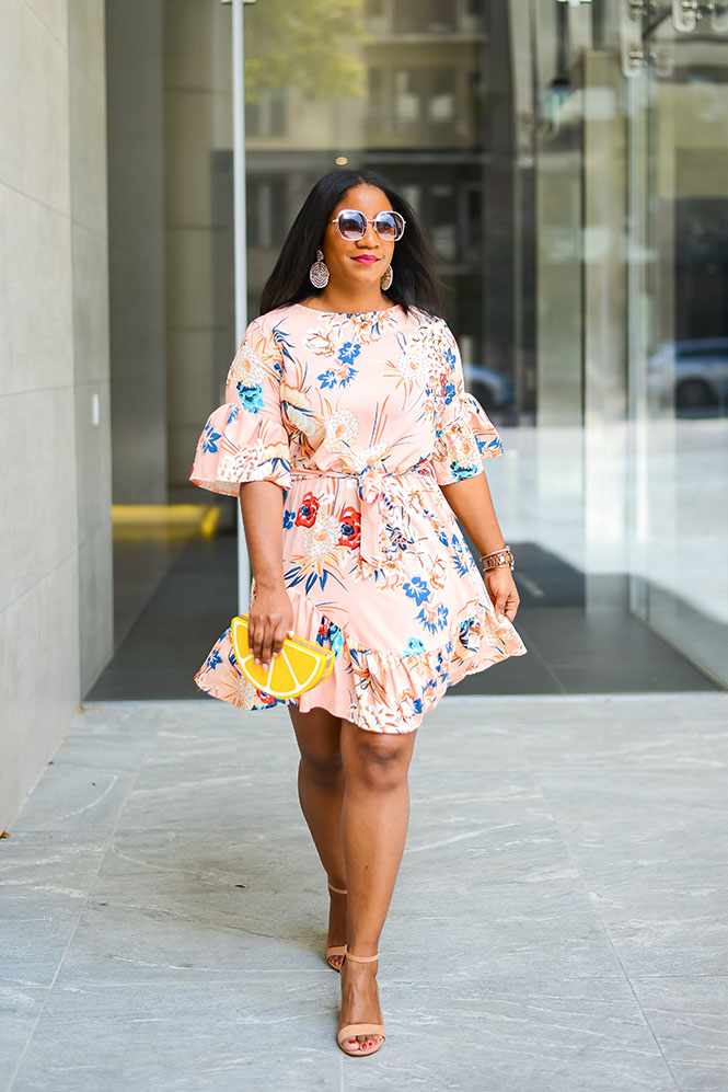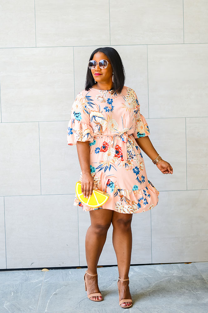 You all have seen this lemon clutch before. Remember this lemonade post? It’s so cute and fun. Every time I carry it, I get a ton of compliments. This dress is also a fave! I bought it for my trip to Cabo last year. It’s the perfect dress for vacation and for spring/summer events. It’s light and comfortable, and the asymmetrical ruffle hem and ruffle sleeves add some fun to the dress. Both the clutch and dress can be found at Amazon and are each under $25! Would you rock this look?
